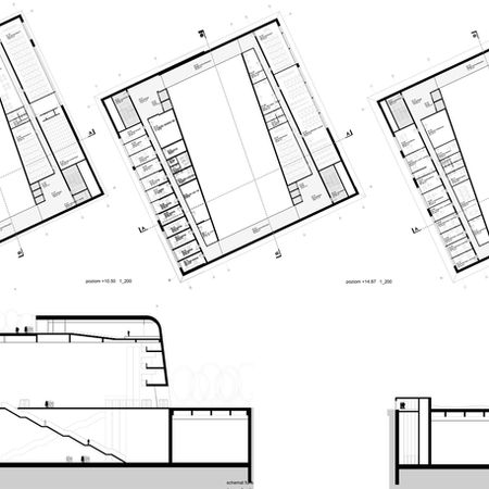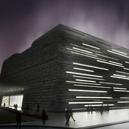 One of the main design assumptions was to create a building as a symbol, an icon in the form of a bunker, which would contain the necessary information. The bunker would be a gate, an element leading to a closed space, another world containing priceless exhibits depicting the dramatic events of World War II. The space around the symbol would complement the atmosphere of deep reverie created inside through the appropriate arrangement of the outdoor exhibition and skilful incorporation of elements of small architecture into the reconstruction of historical parcels connecting the designed functions with the place on which it will be built.